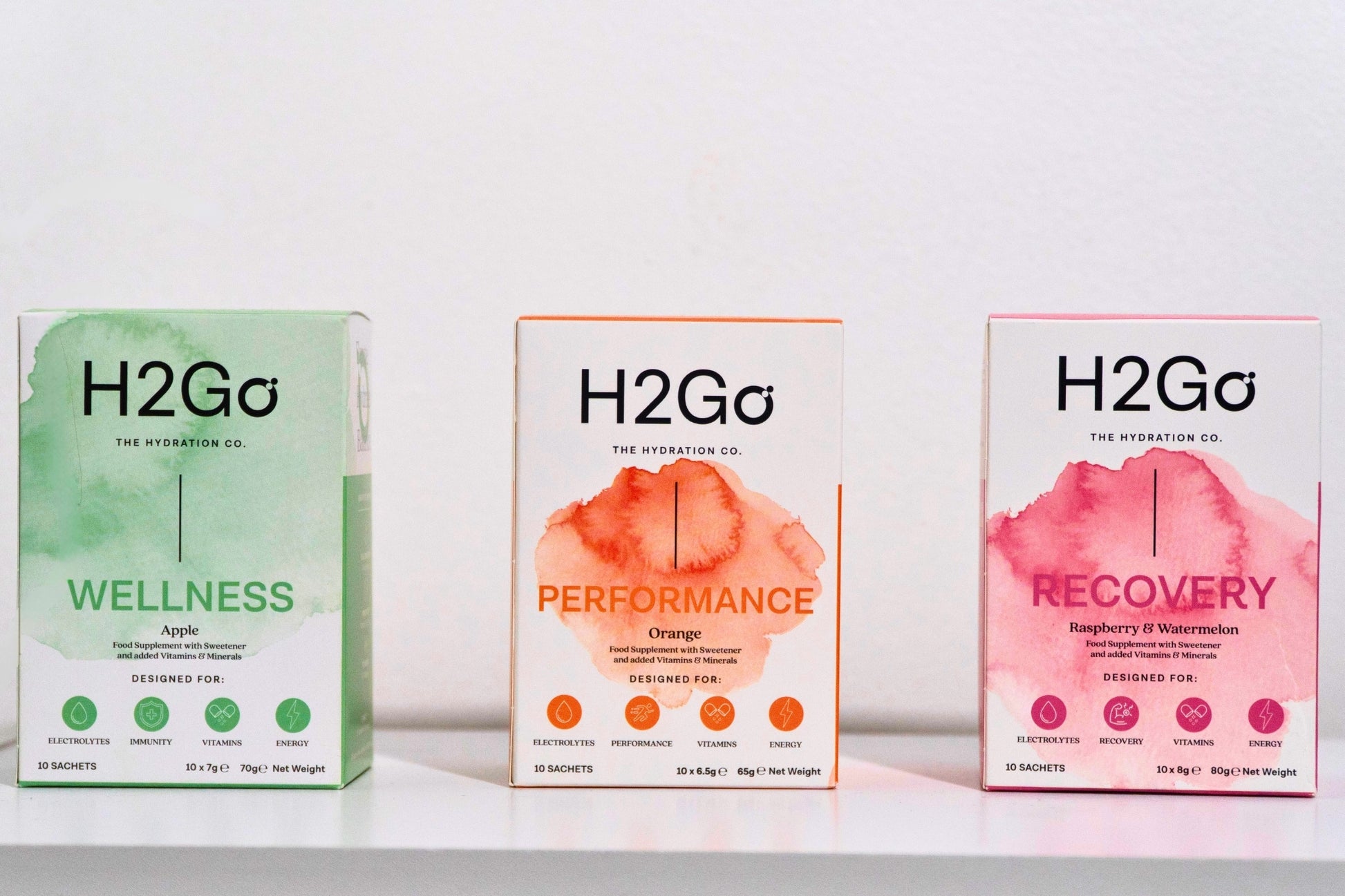 Can't decide which H2Go flavor is for you? Now you don't have to. The H2Go Starter Pack is the perfect way to experience the full range of our science-backed, chef-produced formulas. This bundle includes a full box of each of our three core flavors—Performance (Orange), Recovery (Raspberry & Watermelon), and Wellness (Apple)—giving you the perfect formula for every part of your day. Whether you're fueling up for a workout, recovering from a tough session, or simply elevating your everyday hydration, this pack has you covered. Discover your favorite H2Go formula and fuel your extraordinary.